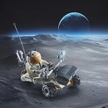 Táto vesmírna stavebnica prenesie deti priamo do centra prieskumu Mesiaca. Robustný rover s funkčnými kolesami, anténami a svetlometmi dopĺňa astronaut s pozláteným hľadím helmy a pohyblivými kĺbmi. Deti môžu stavať, riadiť, objavovať a komunikovať pomocou satelitnej techniky – ideálne na rozvoj fantázie aj jemnej motoriky.