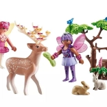Vydajte sa do čarovného lesa so sadou PLAYMOBIL, kde sa dve láskavé víly starajú o lesné zvieratá. Súčasťou je majestátny jeleň s možnosťou ozdobiť parožie kvetmi, dva zajačiky a dvaja vtáci pre nekonečné príbehy. Pohyblivé hlavy zvierat, odnímateľné krídla a doplnky a kreatívna scéna s prírodou podporujú fantáziu a jemnú motoriku detí.