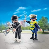Odhaľ tajomstvá zlodeja a jeho dobrodružstva s touto detailne prepracovanou sadou od PLAYMOBIL. V tomto napínavom súboji si policajt so zbraňou a putami chytí zlodeja práve vo chvíli, keď plánuje svoj ďalší čin.