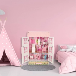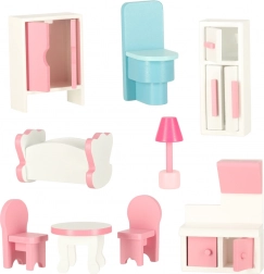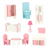 Kvalitné prevedenie z MDF dosiek zaisťuje stabilitu a odolnosť. Deväť pastelových mini‑nábytkov môžete ľubovoľne presúvať a vytvárať nové príbehy s bábikami, plyšákmi aj figúrkami.