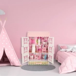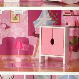 Ružová rezidencia Lulilo Papilio premení detskú izbu na miesto nekonečnej fantázie. Otváracie dvierka s magnetickým zatváraním uľahčia upratovanie aj vystavovanie, zatiaľ čo spodná zásuvka pojme nábytok a drobné doplnky. Domček má 3 poschodia s kuchyňou, kúpeľňou, spálňou, obývačkou a schodiskom.