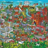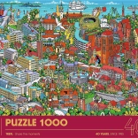 Limitovaná edícia puzzle TREFL Premium Plus Share the Moments: Trojmesto prináša umeleckú ilustráciu, ktorá prepája architektúru Trojmestia s typickými symbolmi značky TREFL. Pri skladaní objavíte hravé detaily, ako sú strešné škridly v tvare puzzle či basketbalisti zasadení do mestských scenérií.