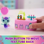 Objavte skryté tajomstvá s aktivačným tlačidlom, vďaka ktorému skúmavky vystúpia na pult a znovu sa schovajú.