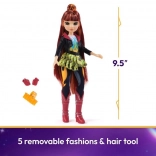 Vstúpte do sveta Akadémie jednorožcov s touto 23 cm vysokou bábikou, inšpirovanou animovaným seriálom a obľúbenou knihou. Bábika Valentina je prepracovaná do posledného detailu a jej zábavná osobnosť sa odráža v jej červených, oranžových a žltých vlasoch, ktoré môžete česať pomocou priložených doplnkov. Má na sebe štýlový jazdecký oblek s čiernou jazdeckou bundou, kockovanú sukňu, jazdecké nohavice s označením Magia ohňa, červené topánky s kovovými cvokmi a jazdecké rukavice.