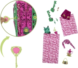 V šatníkovej skrini nájdete viac než 19 prekvapení a šikovný mechanizmus s talizmanom, ktorý po zložení a posunutí odhalí samotnú bábiku – a tento wow moment si môžete užívať znova a znova. Vďaka prvkom na mix & match vytvoríte vyše 125 rôznych outfitov, a po hre uložíte všetko späť do skrine, ktorá slúži ako herný aj úložný prvok.