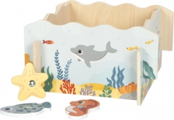 Táto kvalitná drevená magnetická hra s morským motívom je určená pre 1–2 hráčov. Deti pomocou magnetických prútov lovia rybičky, morské koníky či hviezdice, otáčajú ich bodovým označením nahor a na konci sčítajú získané body. Jednoduché pravidlá, krátke herné kolo a pútavé farby robia z hry ideálnu voľbu pre predškolákov.