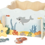 - 2 magnetické drevené prúty, 10 morských živočíchov, 4 zasúvacie bočnice (herné pole)
