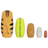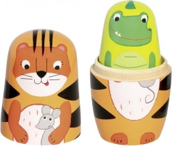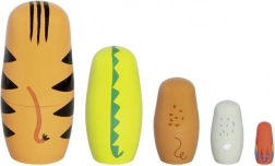 Táto originálna sada 5 drevených matriošiek v podobe exotických zvierat (tiger, krokodíl, opička, koala a vtáčik) prináša deťom radosť z objavovania veľkostí a zábavu pri skladaní. Každá figúrka je starostlivo maľovaná, príjemná do ruky a vďaka hladkému povrchu sa ľahko otvára aj zatvára.