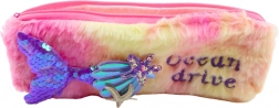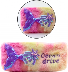 Unikátny plyšový peračník navrhnutý pre deti, ktoré milujú morské panny a more! Ružový peračník s fialovým chvostom, flitrami a mušľami je ideálny doplnok školských potrieb.