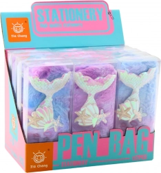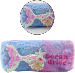 Plyšové puzdro s morskou pannou, ideálne pre deti, ktoré milujú more a jeho tajomstvá. Kombinácia jemných pastelových farieb, bielej chvostovej plutvy s flitrami a mušľami tvorí jedinečný doplnok školských potrieb.