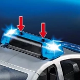 Toto detailne spracované policajné vozidlo PLAYMOBIL prináša deťom adrenalínové naháňačky aj precíznu policajnú prácu. Vďaka svetelným efektom a siréne pôsobí hra realisticky a vtiahne deti do deja. Odnímateľná strecha uľahčuje prístup do interiéru a umožňuje posadiť dnu až štyri figúrky.