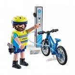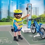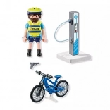- Figúrka policajta, elektrický bicykel, nabíjacia/stojanová stanica, prilba, vesta, výstroj a doplnky