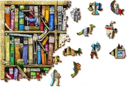 Vyskúšajte zábavné a výzvou nabité puzzle WOODEN CITY s témou políc s knihami. Toto drevené puzzle je laserom vyrezávané a ponúka špeciálne tvarované dieliky, ktoré zaujmú nielen svojou originalitou, ale aj precízne zvýraznenými detailmi.