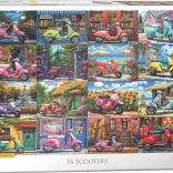 Užite si náročnejšie skladanie s motívom 16 ikonických skútrov. Vďaka unikátnej raznici, ktorá nekopíruje klasickú mriežku, majú dieliky netradičné tvary, takže každé zapadnutie je o to uspokojivejšie.