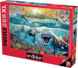 Vydajte sa na podmorské dobrodružstvo s týmto nádherným puzzle s motívom usmievajúcich sa delfínov. Ideálne pre všetky vekové kategórie, prináša radosť a relaxáciu pri skladaní.