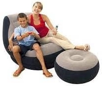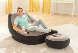 Pohodlné nafukovacie kreslo s podnožkou ideálne na domáce aj vonkajšie použitie. Umožňuje užiť si chvíle odpočinku v maximálnom komforte.