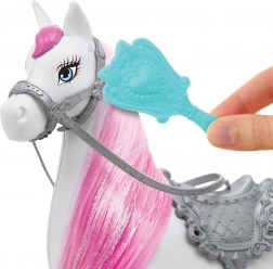 Biely koník s ružovou hrivou a strieborným sedlom umožní princeznej vyraziť na výjazdy do fantázie.