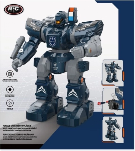 Objavte interaktívneho policajného robota s výškou cca 38 cm, ktorý zaujme svetelnými efektmi, zvukmi a tromi tanečnými melódiami. Vďaka diaľkovému ovládaniu ľahko riadite pohyb vpred/vzad, otáčanie, hlasitosť aj svetlá. Nechýba robotická ruka s projektilmi pre akčnú zábavu a rozvoj koordinácie a predstavivosti detí.