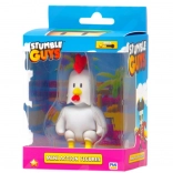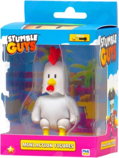 Mini figúrka bieleho kohúta s červeným hrebeňom a žltými nohami v pestrej krabičke, ideálna pre všetkých hráčov Stumble Guys.