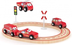Súčasťou balenia je 16 dielov, vrátane drevených koľají a vozidiel s hasičskými motívmi. Deti môžu stavať vlastné trate a vymýšľať príbehy, ktoré rozvíjajú ich fantáziu aj sociálne zručnosti.