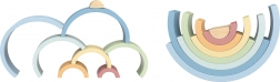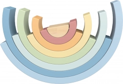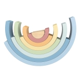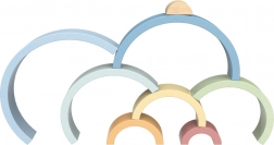 Sada obsahuje 8 polkruhových dielov v rôznych veľkostiach a jemných farbách, ktoré možno skladať do dúhy, mostov, tunelov aj fantazijných stavieb.