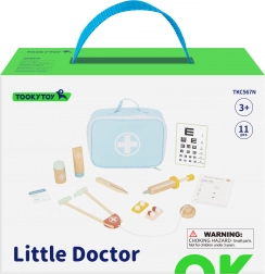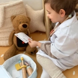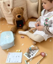 Štýlový detský lekársky kufrík ukrýva všetko, čo malý lekár potrebuje na starostlivosť o svojich plyšových pacientov. Sada podporuje role-play, učí empatii a zmenšuje strach z návštevy ordinácie. Všetky diely sú vyrobené z kvalitného dreva a farbené bezpečnými, netoxickými farbami.