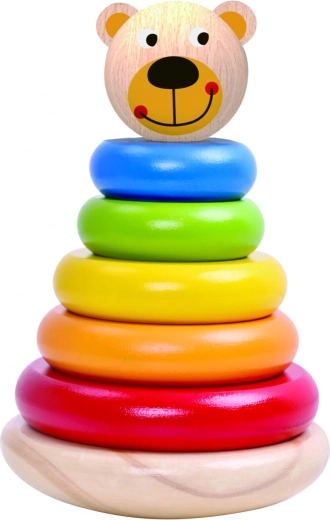 Súčasťou balenia je stabilný podstavec s kolíkom a sada krúžkov, z ktorých deti postavia vežu. Hračka je z kvalitného dreva s hladkým povrchom, príjemná do detských rúk a vhodná na každodenné hranie.