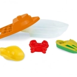 Súčasťou sady je loďka, lyžička a rôzne formičky, ktoré sú perfektné na vytvorenie skvelých pieskových stavieb.
