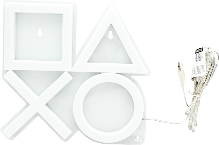 Neónové svetlo obsahuje štvorec, trojuholník, kruh a kríž, ktoré sú ikonickými tlačidlami PlayStation ovládača.