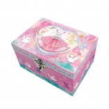 Uložte svoje cennosti do elegantnej šperkovnice s baletnou tematikou. Po natiahnutí a otvorení sa ozýva príjemná hudba – ideálne pre malé princezné.