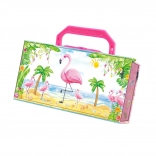 Uložte svoje poklady do krásnej šperkovnice v tvare kufríku s motívom Plameniak. Ideálny doplnok pre malé princezné.