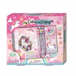 Vytvorte si vlastný kreatívny svet s farebnou sadou jednorožca, ktorá obsahuje denník, trblietavé perá s vôňou a sadu nálepiek pre deti od 6 rokov.