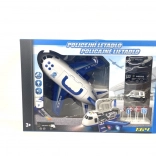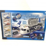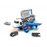 Policajné lietadlo s nákladným priestorom a 3 autíčka je úžasný hrací set pre deti. Obsahuje lietadlo so svetelnými a zvukovými efektmi a tri kovové autíčka v mierke 1:64.
