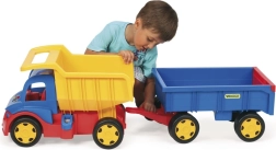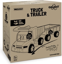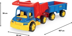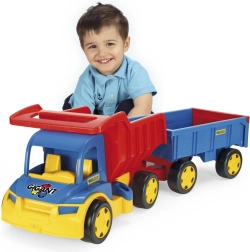 Toto obrovské nákladné auto s prívesom je ideálne pre všetkých malých milovníkov nákladných áut. Veľká a pevná konštrukcia poskytuje odolnosť a zábavu na dlhé roky. Vďaka pripojiteľnému závesu, deti môžu auto ľahko ťahať a používať ho na prepravu hračiek alebo iných predmetov. Zábava a učenie v jednom, nákladné auto stimuluje detskú predstavivosť, zlepšuje manuálnu zručnosť a podporuje koordináciu oko-ruka. Výborne sa hodí pre hranie doma aj vonku.