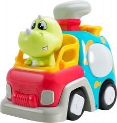 Objavte roztomilé autíčko s motívom dinosaura, ktoré prináša veľa interaktívnej zábavy pre najmenších. Po stlačení tlačidiel na zadnej strane sa aktivujú svetelné efekty a zvuky, ktoré podporujú zmyslový rozvoj a rozvíjajú detskú zvedavosť. Vďaka voľnobežným kolieskam sa autíčko ľahko ovláda a plynulo jazdí po rôznych povrchoch.