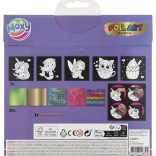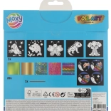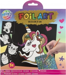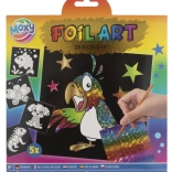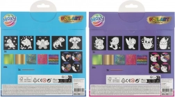 Sada obsahuje päť rôznorodých obrázkov so samolepiacimi plochami na vlastné dotvorenie. Deti môžu využiť 20 žiarivých fólií s rôznymi motívmi, ktoré umožňujú neobmedzenú kreativitu. Stačí si vybrať časť obrázka, odstrániť ochrannú vrstvu a lepiacu plochu ozdobiť vybranou fóliou.
