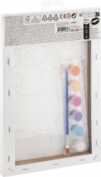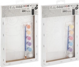 - Predtlačené plátno, 6 vodových farieb, štetec