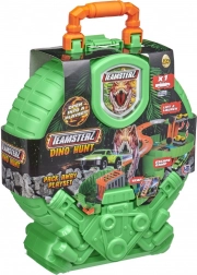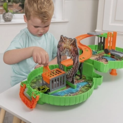 Priprav sa na akciu s prenosným dinosauřím setom TEAMSTERZ, ktorý sa po otvorení premení na tematické ihrisko s traťou, pascami a rampami. Deti môžu spúšťať autíčko z rampy, prechádzať okolo dinosauřej tlamy a zachraňovať vozidlá z klietky – to všetko v kompaktnom kufríku pripravenom na cestu.