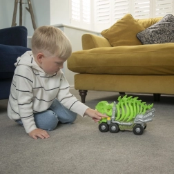 Vydaj sa na praveké dobrodružstvo s autom TEAMSTERZ T‑Rex! Toto originálne dino vozidlo so zvukmi revúceho T‑Rexa, blikajúcim žltým okom a otváracími čeľusťami pri jazde premení každú hru na napínavú podívanú. Do hrudného koša si navyše uložíš svoje obľúbené autíčka. Batérie sú súčasťou balenia.