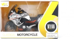 Táto pretekárska motorka v mierke 1:10 je perfektnou voľbou pre malých fanúšikov rýchlej jazdy. Stačí ju niekoľkokrát natiahnuť dozadu a pustiť – vďaka mechanickému pohonu vyrazí vpred bez potreby batérií. Realistické proporcie a detaily z nej robia skvelú hračku na akčné preteky doma aj na ihrisku.