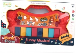 Pestrofarebné klávesy v žltej, červenej a modrej prispievajú k veselej atmosfére a podporujú hudobné vzdelávanie.