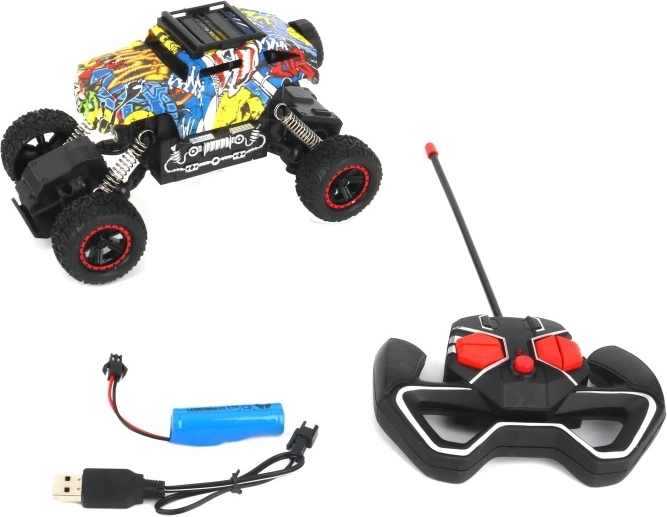 Predstavujeme RC terénne auto navrhnuté pre všetkých milovníkov rýchlosti a vzrušujúcich závodov. Toto vozidlo, dostupné v šiestich jedinečných dizajnoch, ponúka všestranné funkcie zahŕňajúce jazdu dopredu a dozadu, ako aj zatáčanie doprava a doľava.