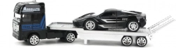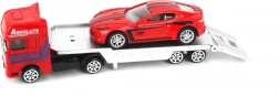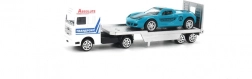 Tento odťahový transportér s priloženým športovým autíčkom prináša akčnú zábavu v priebehu pár sekúnd. Vďaka mechanizmu pull-back stačí model natiahnuť dozadu, pustiť a sledovať, ako vyrazí na záchrannú misiu. Kovové časti (die-cast) a precízne spracovanie zabezpečujú odolnosť aj atraktívny vzhľad.
