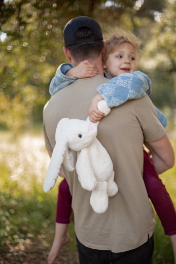 Vyrobený z mäkkého a príjemného plyšu, vďaka čomu je tento zajačik ideálny na objatie a maznanie.