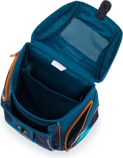 Premyslená výbava uľahčí každý školský deň: hlavná komora s rozdeľovačom, menovka a rozvrh hodín pre perfektný prehľad, predné vrecko na desiatový box a bočné vrecká na zips. Pevné nepremokavé dno s nožičkami zabezpečuje stabilitu aj odolnosť. Skvelú viditeľnosť zaisťujú reflexné prvky po obvode batohu.
