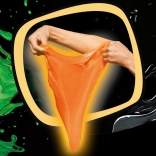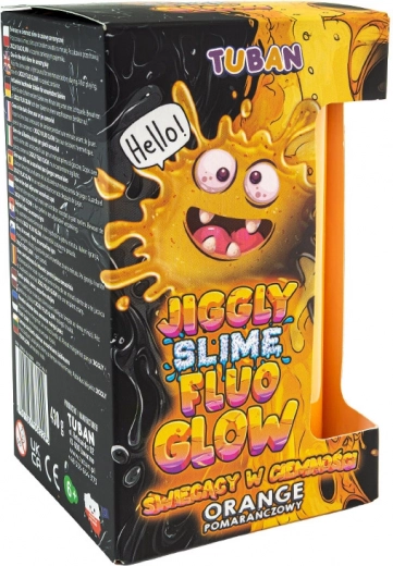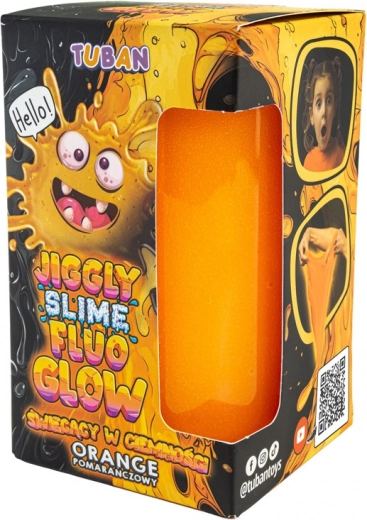 Tento jedinečný Jiggly Slime vďaka svojej špeciálnej receptúre príjemne vibruje a trasie sa pri dotyku, pritom sa ľahko naťahuje do všetkých smerov. Je ideálny na dlhé stláčanie, prehadzovanie z ruky do ruky, naťahovanie aj tvorbu bublín. Fluorescenčný pigment mu prepožičiava sýtu oranžovú farbu a efekt glow-in-the-dark pre ešte zábavnejšie hranie.