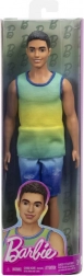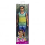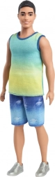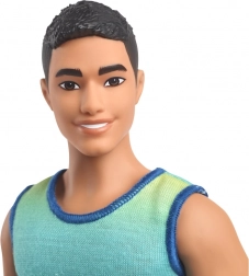 Bábika Ken je tu so širokou postavou, oblečená v ombre tope, ktorý prechádza z modrej do zelenej, ideálny pre všetky osobnosti a príležitosti. Zničené džínsové šortky a strieborné tenisky dopĺňajú jej univerzálny a sofistikovaný vzhľad, či už ide o stretnutie s kamarátmi či dovádzanie na pláži.