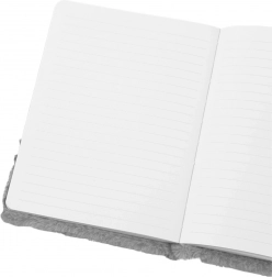 Sivý, na dotyk príjemný obal s vyšívanými detailmi a uškami dodá vašim poznámkam čaro a ochráni vnútorné strany.