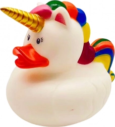 - Unikátny dizajn – biela káčička s dúhovou hrivou a chvostom a rohom jednorožca zaujme na prvý pohľad.