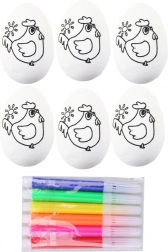 Polystyrénové veľkonočné vajíčka na maľovanie s fixkami, motív sliepočky, 6 ks